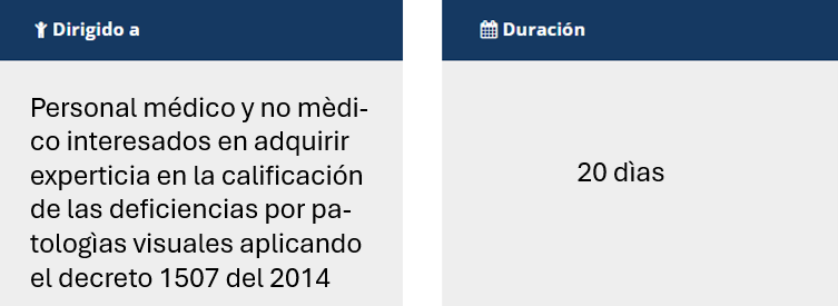 CURSO DE EXPERTO EN CALIFICACIÒN DE LA PÈRDIDA DE LA CAPACIDAD LABORAL Y OCUPACIONAL DE LAS PATOLOGÌAS VISUALES. DECRETO 1507 DEL 2014